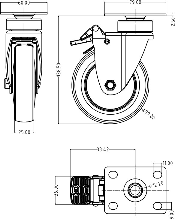 單/雙全塑腳輪
